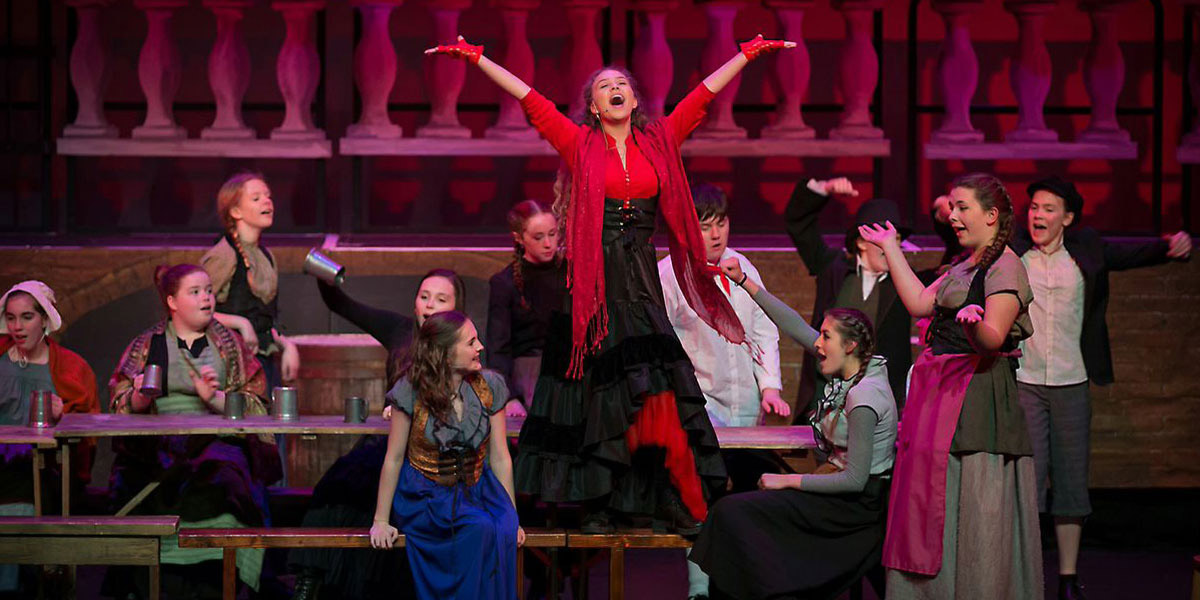 Our programme provides opportunities for youngsters to explore a vast range of stage techniques and genres - musical theatre, jazz and modern dance, improvisation, devising, melodrama, popular singing styles, characterisation, accents, comedy, physical theatre, stage combat and much more.